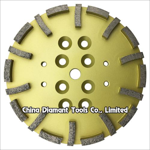 They are designed for removing hard epoxies and coatings, erasing concrete imperfections, leveling uneven spots or joints and smoothing rough or patched concrete surfaces. It has 10-20pcs curved shape diamond segments and it is very high efficient for grinding deep on the concrete terrazzo surface.