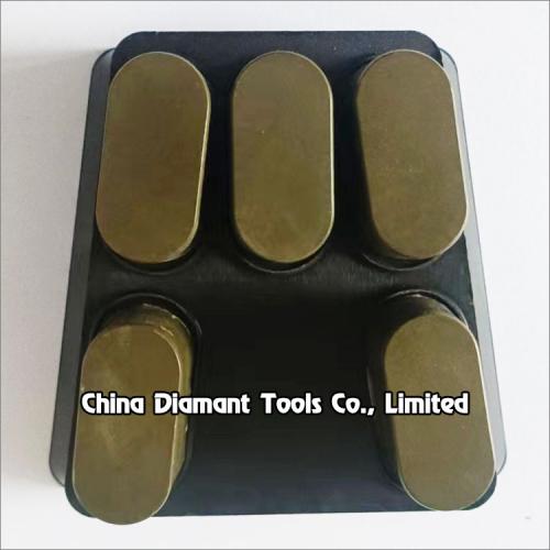 This type resin bond diamond abrasive are connected to polishing machines with Frankfurt plastic bracket and widely used for marble granite artificial stone slabs surface polishing from rough to smooth in automatic polishing lines. Also can be used with floor grinders, to repair and renovate granite, marble, terrazzo, and concrete.