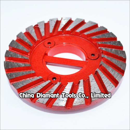 Diamond grinding wheels with turbo continuous rim segment and snail lock back for grinding slab edge of various stone such as granite marble, sandstone, limestone, etc..