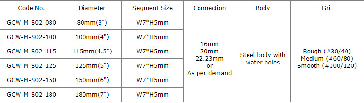 Also we can make the segments bond for universal purpose to grind various materials such as concrete, asphalt, masonry, terrazzo, ceramic, bricks, etc..