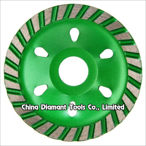 Single row diamond grinding cup wheels with narrow turbo rim segments for grinding various stone such as granite marble sandstone etc., ideal for smoothing and shaping as well as stock removal.