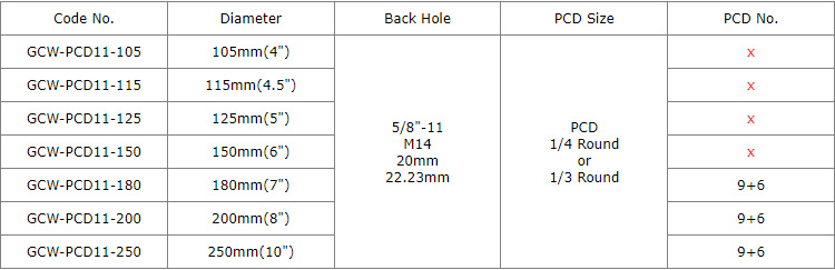 In the above photo the PCD size is 1/4 Round.