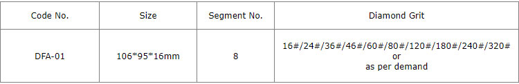 Metal bond diamond Frankfurt abrasive is usually used for rough calibration and medium grinding on natural stone and artificial quartz slabs with automatic polishing machines and line polishing machines with the characteristics of stabilization, extremely high output, low consumption, excellent gloss etc.