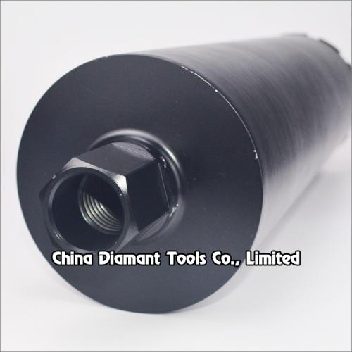 Diamond core drill bits with matrix (arix) segments silver or laser welded diameter 25mm-350mm provide smooth and fast drilling for various concrete of cured reinforced concrete with hard to soft aggregates, green concrete or abrasive materials, such as construction of bridges, high-rise buildings, wall, floor, etc., which have goods quantity of drilling holes, high performance in drilling difficult operation conditions, especially reinforced concrete with much steel bars or pebble stone.