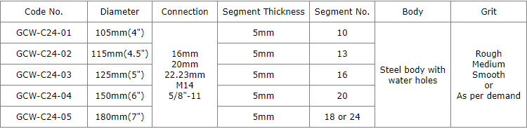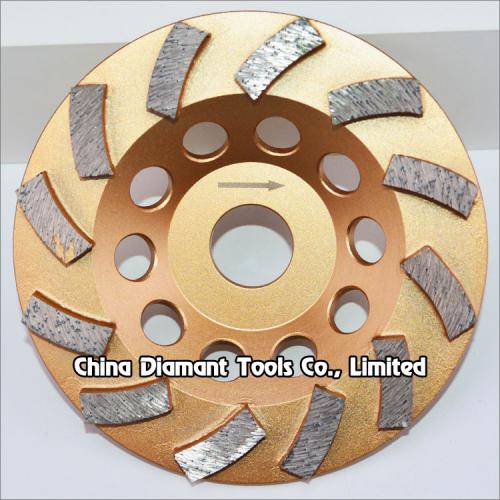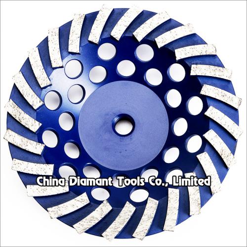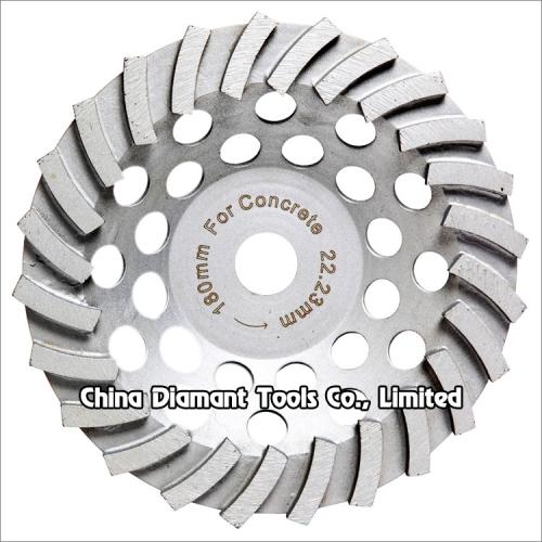 Turbo row diamond grinding cup wheels for grinding various concrete or other masonry materials such as stone, terrazzo, bricks, etc., ideal for smoothing and shaping as well as stock removal.