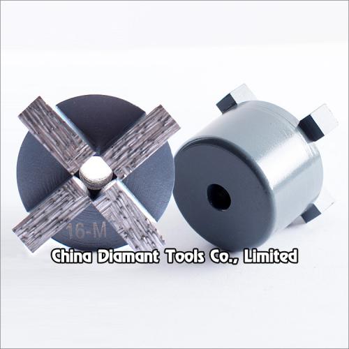 Diamond grinding plugs with 4pcs bar shape diamond segments, usually used on Prepmaster/Floorex/Terrcoo floor grinders for aggressive concrete cleaning, smoothing, and coating removal, the segment helps transition over joints and leave a smooth profiles, remove dry or wet, rough & uneven spots on concrete or terrazzo surfaces.