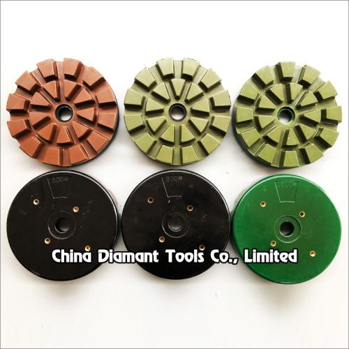 Resin bond diamond disc which is made by using plastic disc with resin segments for smooth polishing granite marble various stone slab surface in automatic grinding machines or single head polishing machines.