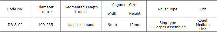 We can offer diamond rollers with different lengths and diameters as well as segment quantity and Grit to suit the needs of machines of different brands.