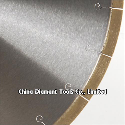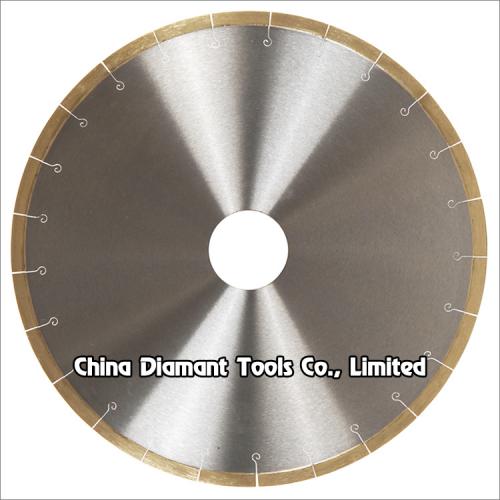 Diamond saw blades with fishhook steel blank and 10mm height fanlike shape segments for slab edge cutting of marble, limestone, slate, various soft stones without quartz, cutting slabs to tiles or as per order request.