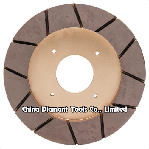 This resin bond dry using diamond squaring wheels are used to make modifying the uprightness of ceramic tiles four edges in order to achieve scheduled size, it is a necessary squaring tool for big size glaze ceramic tiles, porcelain tiles and polished porcelain tiles. This segmented type resin bond squaring wheel is used after the metal bond diamond squaring wheel, on continuous automatic polishing line for making fine squaring on ceramic tiles edges in order to achieve high precision size, flat and smooth effect.