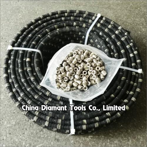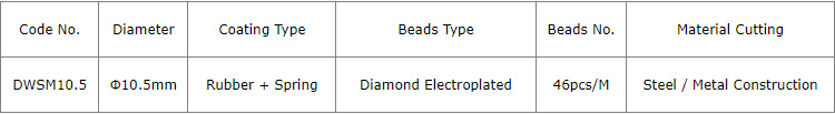 "Rubber + spring" coating type diamond wire saw with electroplated diamond beads, this technique is widely used in steel and metal construction cutting, also applicable for offshore or under-water conditions.