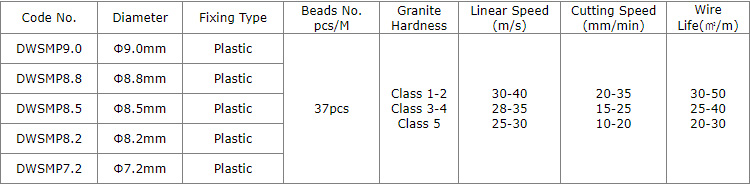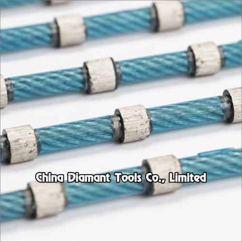 This plastic coating type diamond wire with sintered diamond beads, mostly with 7.2mm-9mm diameter which could be widely used for marble stone cutting and profiling as well at stationary in hour diamond wire saw machine at stone factory. It could be used to make stone figure sawing, edge profiling, shaping and stone cutting as well.