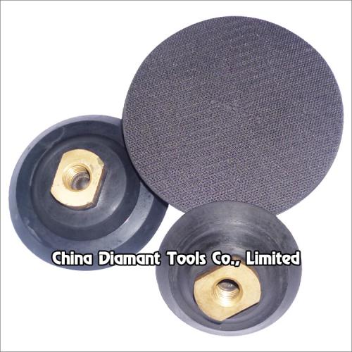 Velcro backer, the connector rubber backing pad between polishing pad and angle grinder or other hand machines, used for holding diamond polishing pad to power tools easily, made with high quality durable rubber and screw cap of solid brass, which provide long working life and can bear heavy duty working and a little flexible.