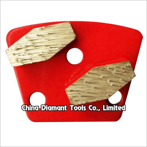 Trapezoid diamond grinding shoes with 1 or 2pcs parallelogram segments, which is one of the floor preparation tools used on floor grinders, designed for floor grinding (leveling uneven spots or joints) and quick removing thin epoxy coatings, glue or other materials on floor surface, it is extremely aggressive leaving and deep to medium scratch pattern, take the floor from coarsely structured surface to pre-polishing.
