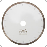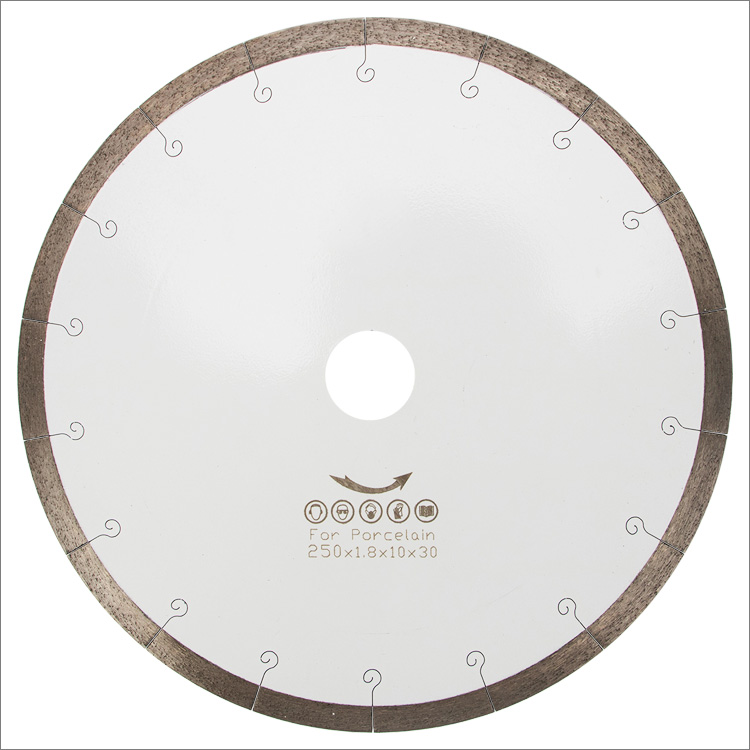 Diamond saw blades hot-press sintered continuous rim with laser cut fishhook slot for cutting ceramic, porcelain, tile, masonry, marble, and soft stone, fast cutting speed with less chips.