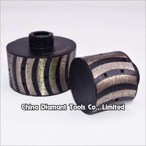Diamond drum Wheels (also we call zero tolerance wheels) 1"(25mm) to 4"(100mm) with resin filled metal bond curved segments and water holes for aggressive milling grinding sink holes on the slab, kitchens, countertops, etc., the segments gap filled with resin, greatly improving the processing stability, reduce vibration as it tends to chatter less and provide a smoother grinding experience than metal wheels., which is a effective way to grind and polish the tight radius, ideal for both professional contractors and DIY home users.