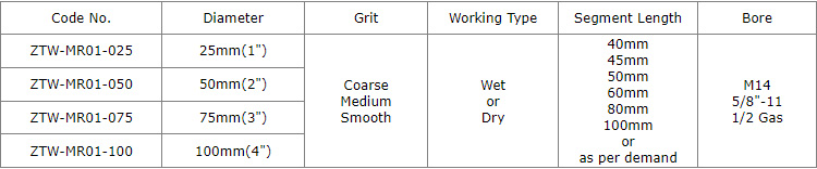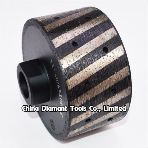 Diamond drum Wheels (also we call zero tolerance wheels) 1"(25mm) to 4"(100mm) resin filled metal bond segmented with water holes for aggressive milling grinding sink holes on the slab, kitchens, countertops, etc., the segments gap filled with resin, greatly improving the processing stability, reduce vibration as it tends to chatter less and provide a smoother grinding experience than metal wheels., which is a effective way to grind and polish the tight radius, ideal for both professional contractors and DIY home users.