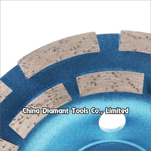 Double rows diamond grinding cup wheels for grinding various concrete or other masonry materials such as stone, terrazzo, bricks, etc. in wet or dry conditions, ideal for smoothing and shaping as well as stock removal.
