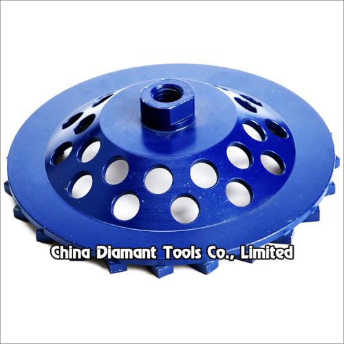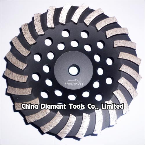 Turbo row diamond grinding cup wheels for grinding various concrete or other masonry materials such as stone, terrazzo, bricks, etc., ideal for smoothing and shaping as well as stock removal.
