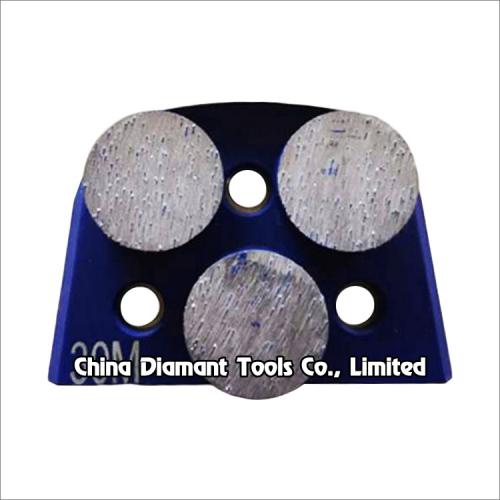Diamond grinding shoes floor grinding pads with 1 or 2pcs metal bond round segments for Lavina grinders, suitable for general floor grinding use, it is often used for rough leveling and grinding of concrete terrazzo stone floor, such as underground parking lot, factory floor, etc., to remove the attachment on its surface.