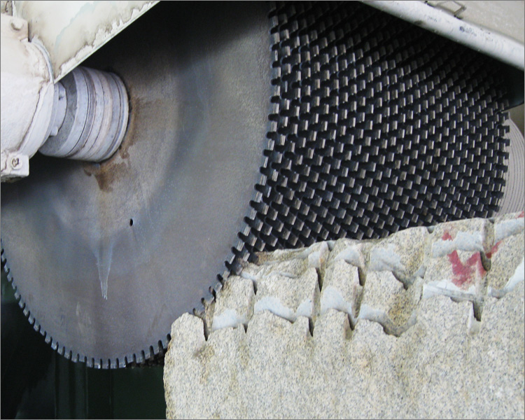 on multi-cutter machine for sawing granite block to slabs or strips,