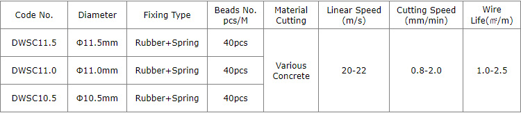 This rubber+spring coating diamond wire is widely used in concrete construction cutting, bridge and under-water construction cutting.