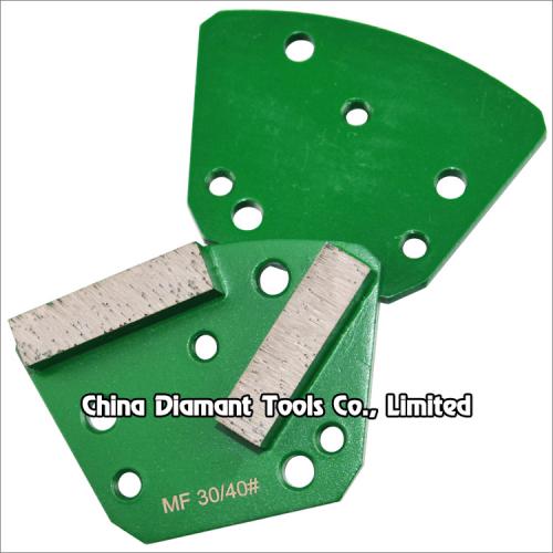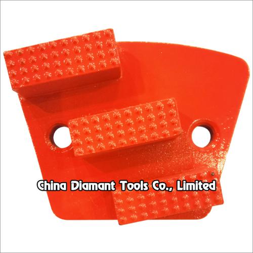 Trapezoid diamond grinding shoes with 1-3pcs bar segments, which is one of the floor preparation tools used on floor grinders, designed for floor grinding (leveling uneven spots or joints) and quick removing thin epoxy coatings, glue or other materials on floor surface, it is extremely aggressive leaving and deep to medium scratch pattern, taking the floor from coarsely structured surface to pre-polishing.